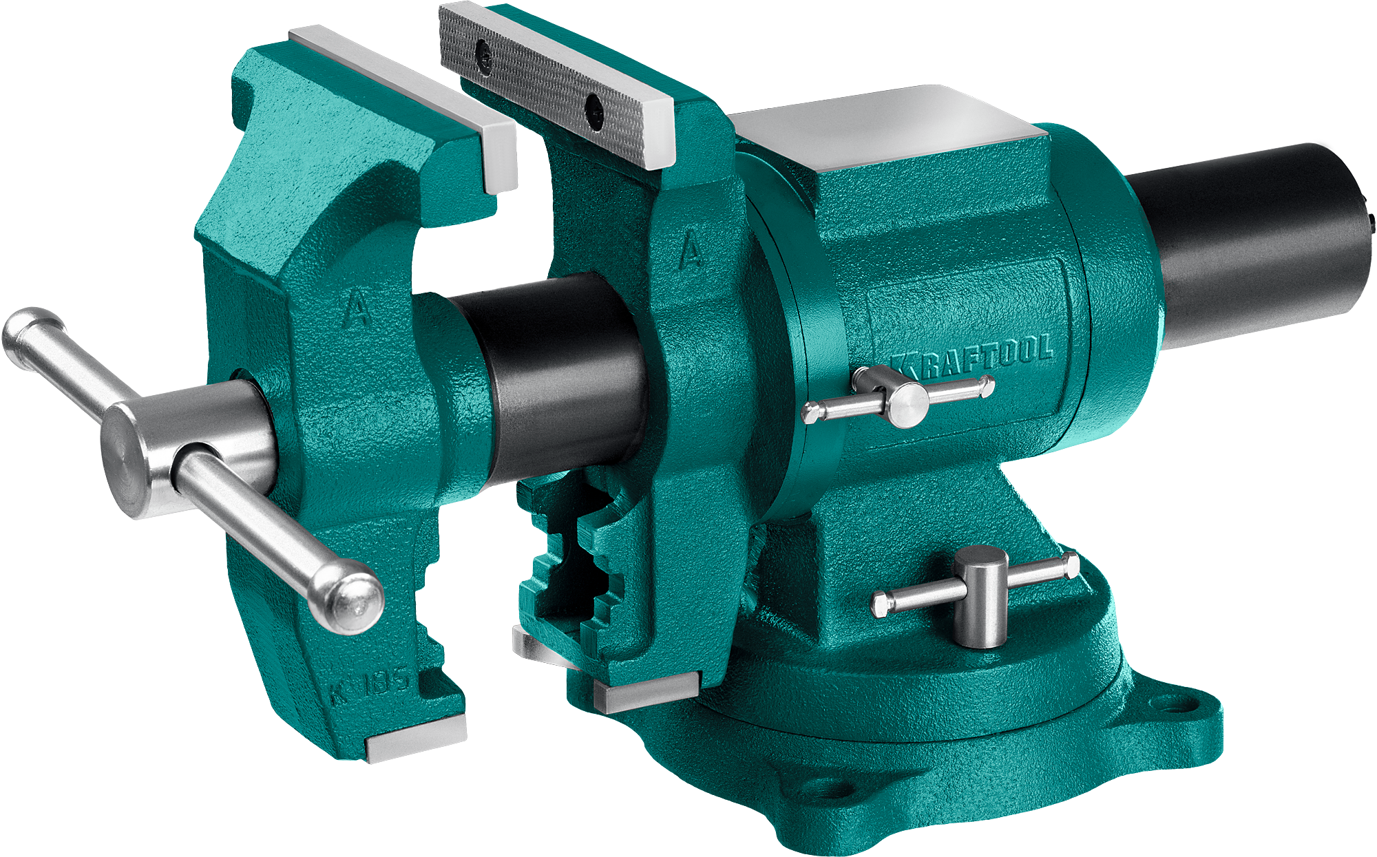 Инновационная конструкция для поворота в двух плоскостях на 360° и блокировкой в каждой из нихСпециализированный зажим для трубУсиленный корпус из высококачественного чугунаРельефная поверхность губок для надежного и безопасного крепления деталейНадежная конструкцияЗакалённыe стальные губкиНаковальня для мелких слесарных работПоворотное основание на 360˚ в двух плоскостяхОцинкованные рукоятка и направляющий винтЗаменяемые губки
